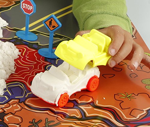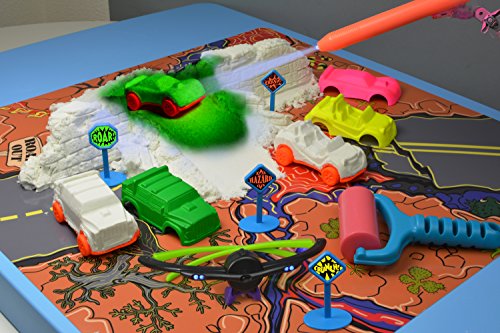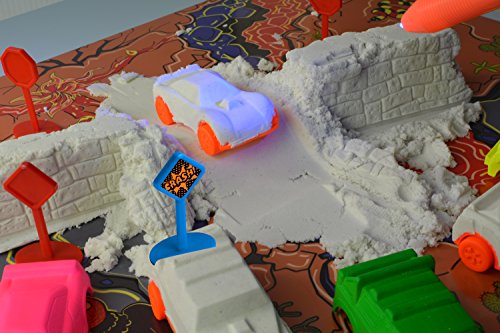 - Feature : KIT CONTENTS: 1 pound of GLOW Sand, 3 Car Chassis, 3 Car Body Shapes, Smooth Roller, 4 Street Signs, UV LED Glasses, UV Pen Light and Glow Play Mat! / FUN: Make Cars, Run Them into Each Other, or into the Walls, Watch Them Crash and Fall Apart / AWESOME: Sand, Play Mat and all Plastic Components React in the Dark with the UV LED Glasses or UV Pen Light / MESS FREE: Sands Alive GLOW is Ultra Smooth And Soft Moldable Sand That Glows In The Dark; Sand stays clumped and does not spread all over; Super easy to clean up / SAFE AND LONG LASTING: 100% Non-Toxic and Anti-Bacterial; Never Dries Out, Use Again and Again; Ages 3+