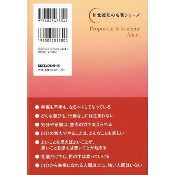 【商品基本情報】 商品名称:アラン幸福論 著者/出版社:川北 義則/川北 義則 初版発行日:2014/11/01 サイズ:四六判 ページ数:256 ISBN/JAN:9784845423347/4528189573505