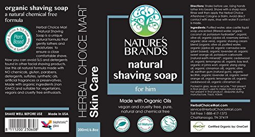 Herbal Choice Mari Natural Shaving Soap, Warm & Woody; 6.8floz, Made with Organic