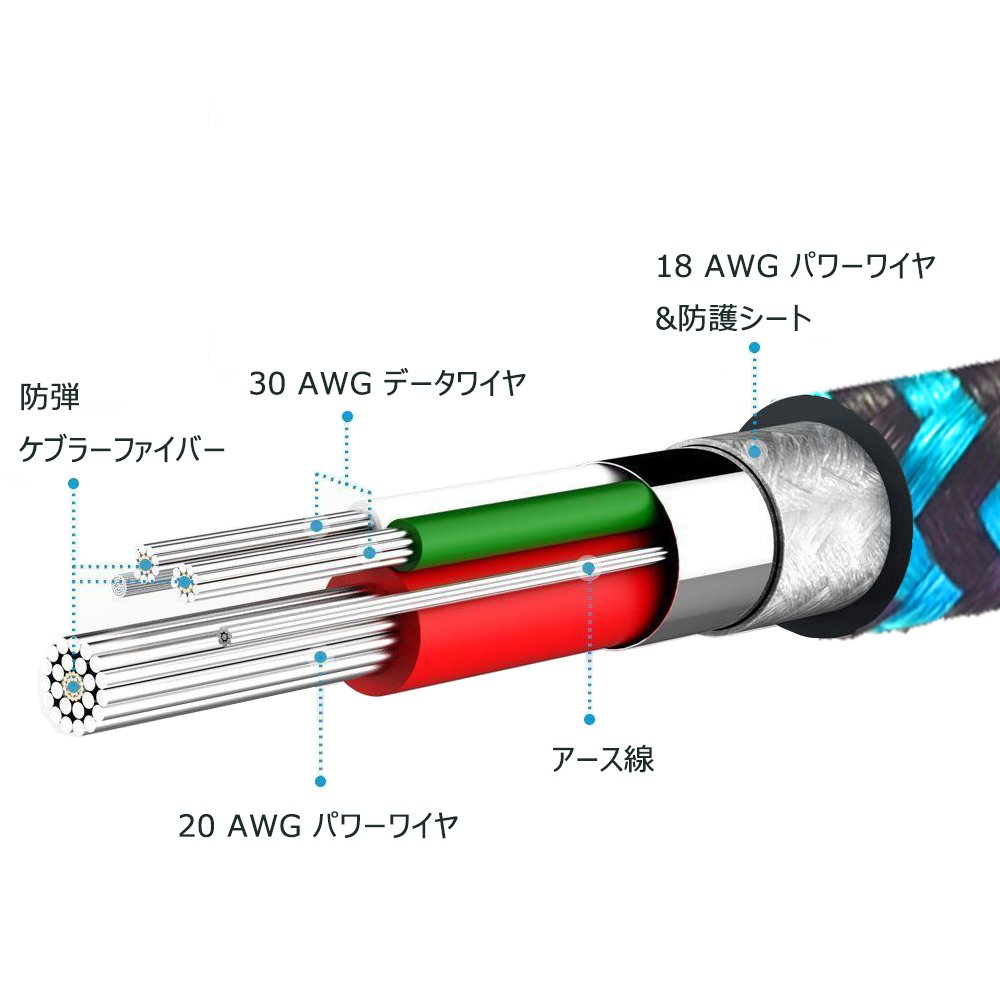 Because it is covered with high durability nylon, it has more strength than ordinary cable.