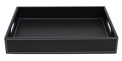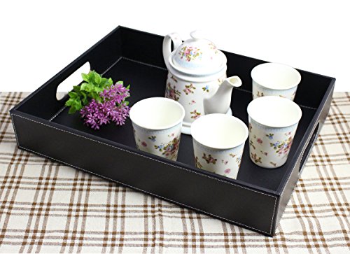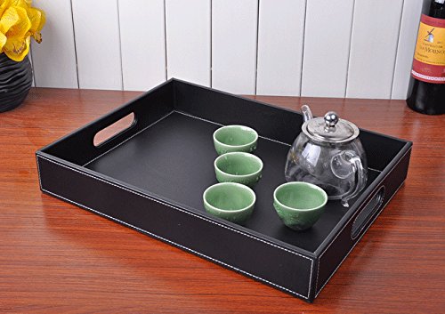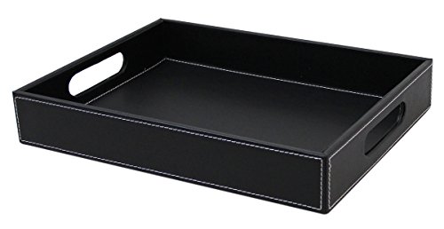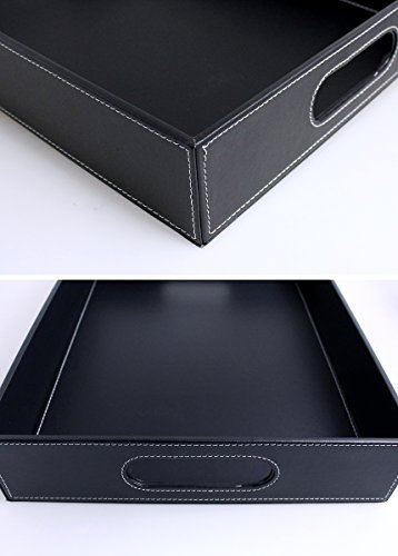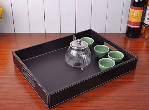If you are looking for a serving tray which looks stylish and yet useful, then look no further. Made from faux leather, the serving tray serves multiple purposes: you can serve beverages and keep fruits in it. You can also use it to store documents or other small items, such as stationery. The edges are compact and the leather is neatly stitched to give it a stylish look. It can be used at home, or in hotels, restaurants and offices. You can gift this serving tray to your family and friends at special occasions such as housewarmings.Feature