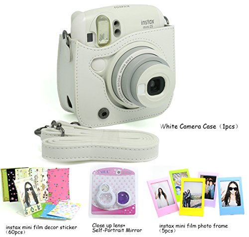 CAIUL 4 in 1 Fujifilm instax Mini 25 26 Instant Camera Accessories Bundles (White Mini 25 Case/ Close-Up selfie Lens/ Colorful Film Frame/ Film Stickers)