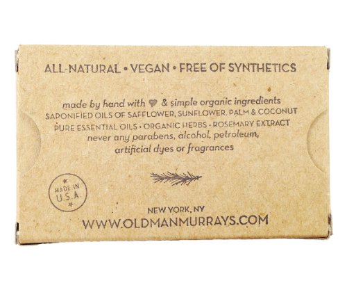 Old Man Murray's soaps are made by hand with all natural ingredients: only the highest quality USDA certified organic vegetable oils, pure essential plant oils and herbs. That's it. We never use synthetic fragrances, colorants, or preservatives. The result is a superior bar of soap that's better for your skin and kinder to our planet.