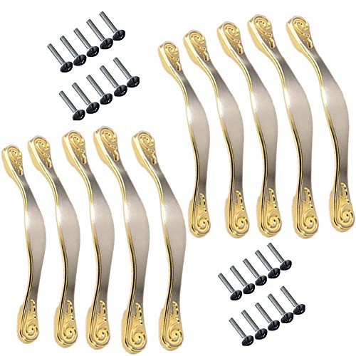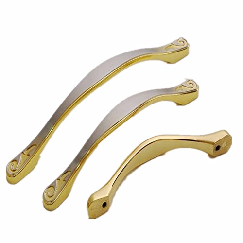 Drawer Pull Handle, 160MM/6.3" Gold Europe Simple Modern Arc Shape Furniture Door Dresser Cabinet Wardrobe Cupboard Pull Handles Kitchen Knobs, Zinc Alloy Material, Pack of 10,By Lsgoodcare