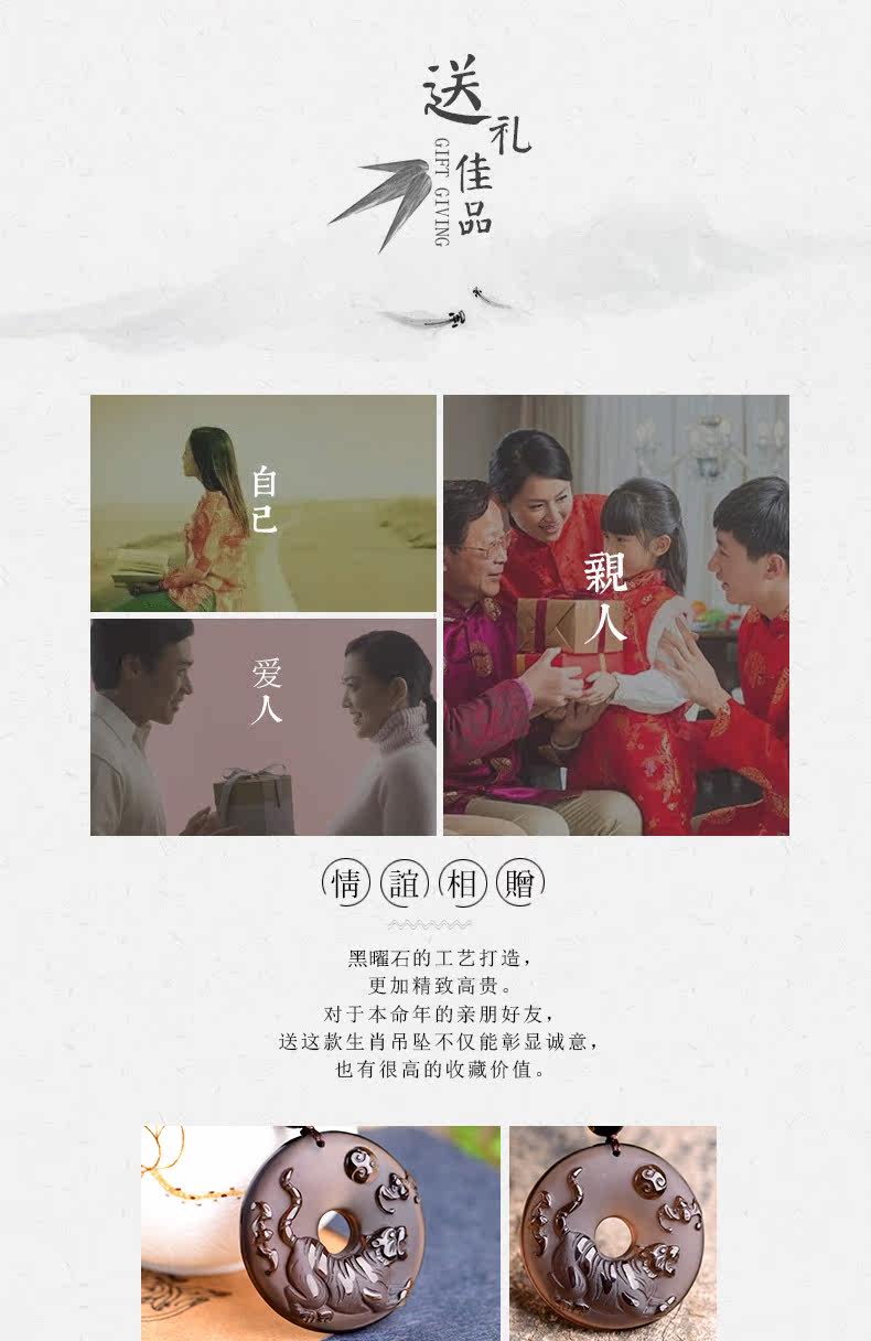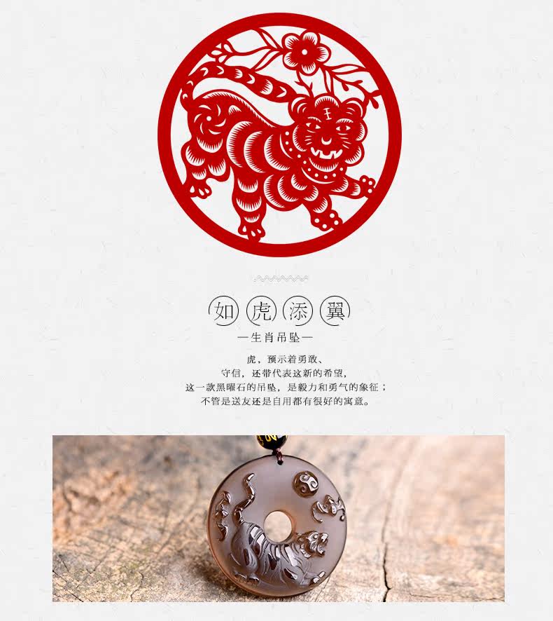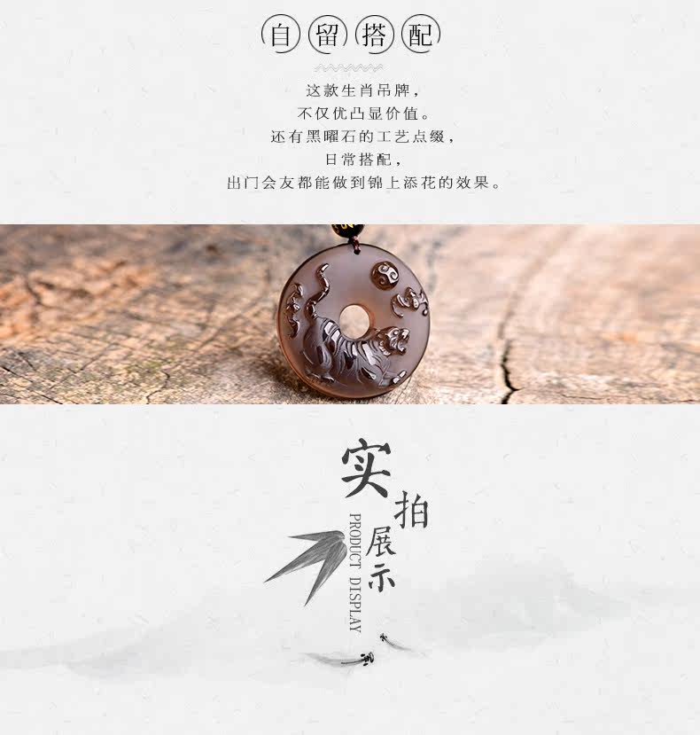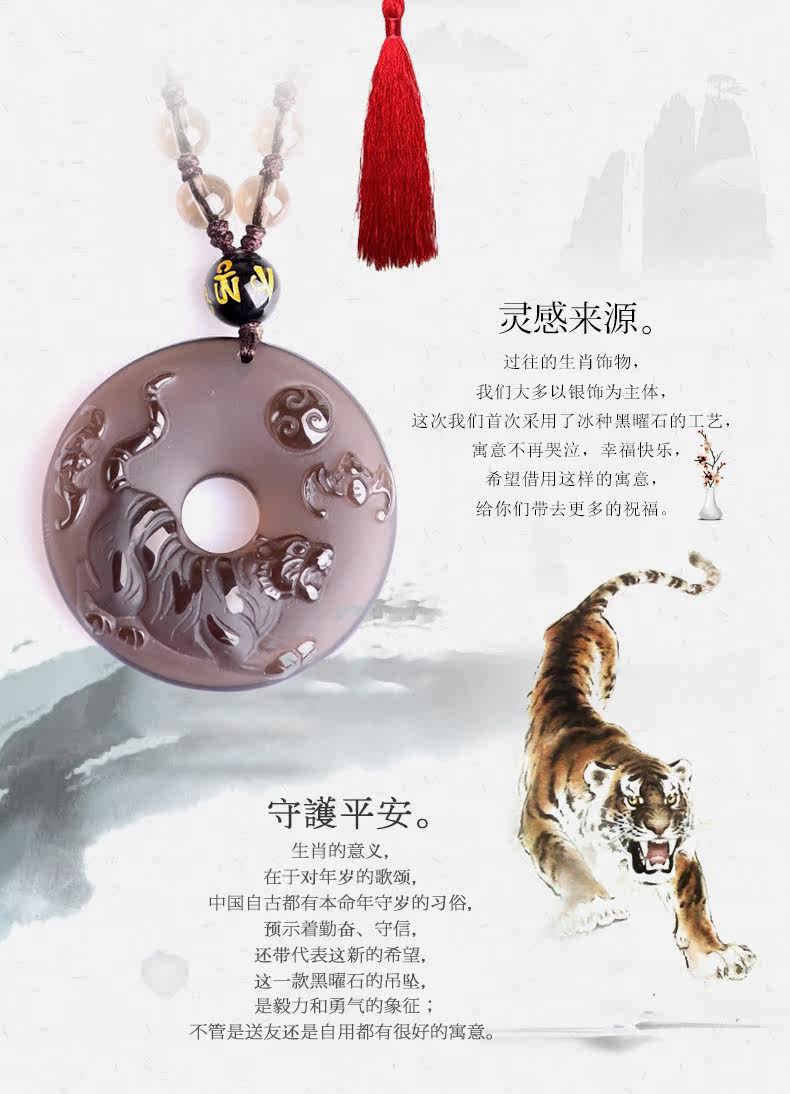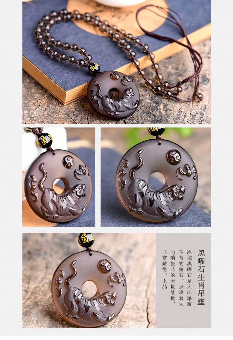 开光天然冰种黑曜石吊坠 十二生肖属虎平安扣男女款项链水晶饰品