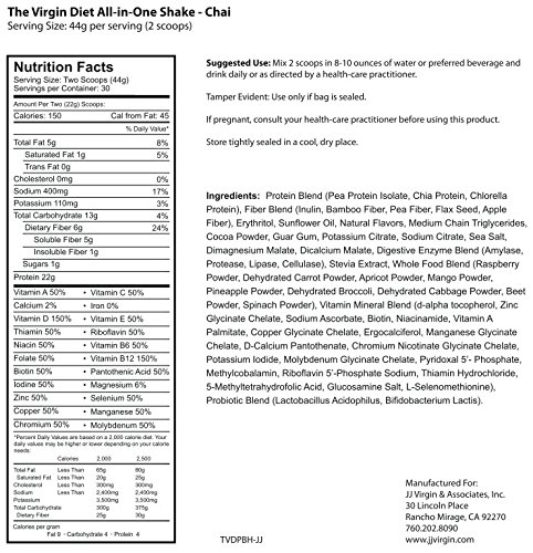 -. Title : JJ Virgin | All-in-One Plant Based CHAI Shake | 30 Servings | 22 Grams of Protein | Meal Replacement | Weight Loss Support | Dairy, Gluten, & Soy Free!
