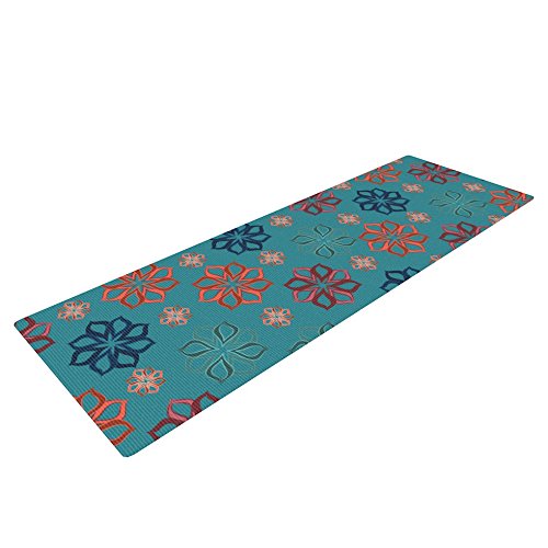KESS INHOUSE JOLENE HECKMAN "TURQUOISE MINI" YOGA EXERCISE MAT, TEAL FLOWERS, 72 X 24-INCH