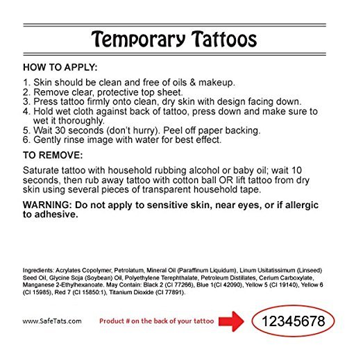 Set includes 2 temporary tattoos