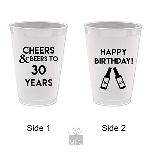 30th Birthday Frost Flex Plastic Cups - Cheers and Beers to 30 Years (10 cups)