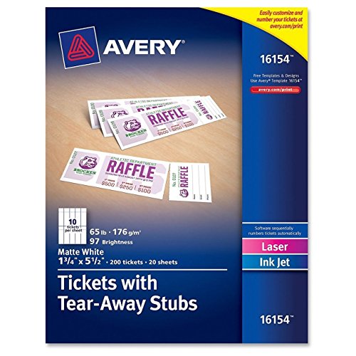 Avery Tickets with Tear-Away Stubs, 1.75 inches x 5.5 inches, Matte White, Pack of 2 = 400 Tickets
