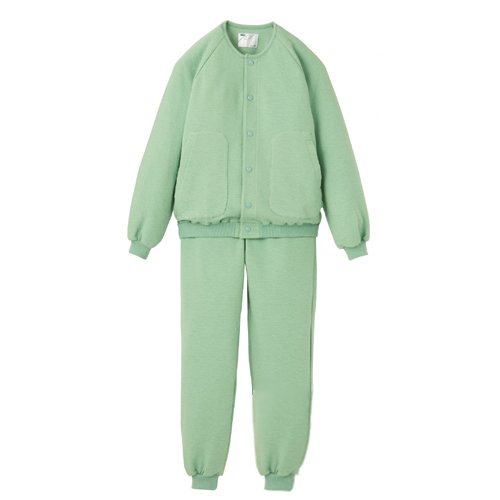 "5080 Wave Knit Interior Wear (Front Button Type) Upper and Lower Set Green L" is a hospital wear / patient clothing using lightweight and stretchy wave nut material.