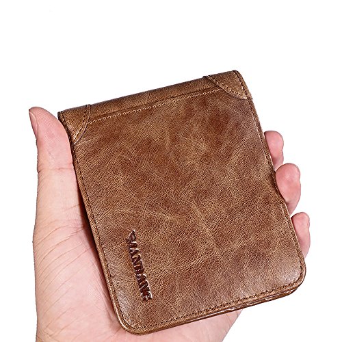 -. Feature : Material: Genuine Cowhide leather after waxing process imported from Italy, soft and comfortable. The lining was made of polyester, smooth and durable / Demensions: L 4.7'' x W 3.7'' x H 0.59'', great fit for use / Capacity: 6 card slots, 3 inside slots, 1 ID window, 1 SD card slot, 1 SIM slot, 2 top long slots / As genuine cowhide leather wallet, it will become brighter and brighter over time / Satisfaction Guarantee: If you aren't completely happy with our leather wallet, simply return it within 30 days for a full, no questions asked refund