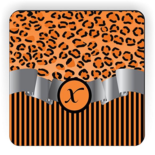 Rikki Knight Letter "X" Initial Orange Leopard Print and Stripes Monogrammed Design Square Fridge Magnet