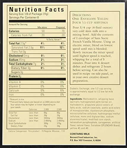 Sans Sucre Mousse Mix - SUGAR FREE, LOW FAT French Vanilla TWO 1.5 OZ ENVELOPES NET WT. 3 OZ. (85G)