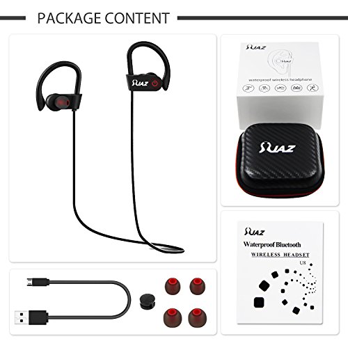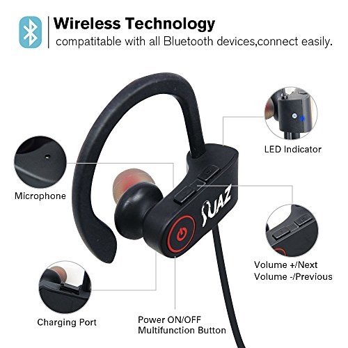 Waterproof Bluetooth Wireless Headphone - JAZ 2017 New Wireless Bluetooth Headset Earbud Headphone Strong Stereo Bass Noise Cancelling IPX7 Grade Waterproof for Gym Running Workout
