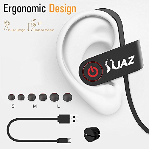 COMFORTABLE AND SECURE FIT: Flexible and durable silicone ear hooks with ergonomic earbuds, which can stay firm in your ear canal.Premium soft smooth silicone gel surface helps sweat proof