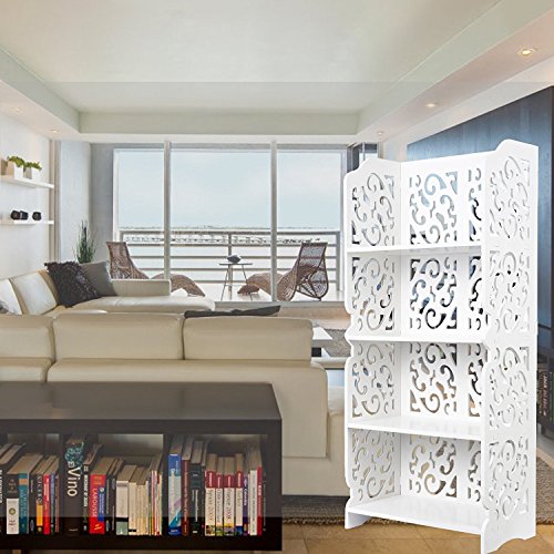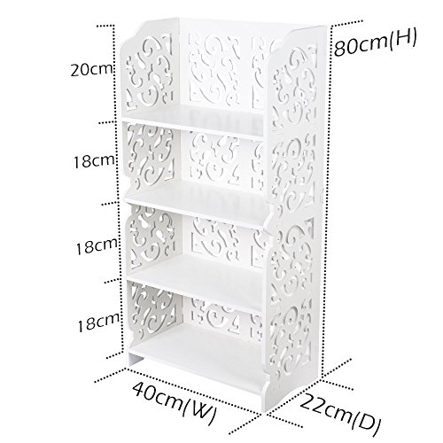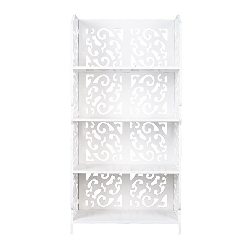 Bookshelf Shabby Chic Display Shelf 4 Tiers Book Storage Rack Stand for Bedroom Living Room Kitchen