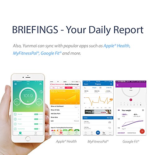 Studio : Yunmai Technology Publisher : Yunmai Technology Binding : Misc. Product Description Improve your weight loss and overall weight management with 10 precision measurements and Bluetooth wireless tracking. Reaching a healthy weight goal is important at any age as it impacts our energy level, cardiovascular health and even our confidence. That is why you need a scale that helps you measure all the most important body composition features so you can live better. Introducing the Yunmai Bluetooth Weight Scale, the complete home weight management system for today modern home. Connected Health Benefits The Yunmai body fat analyzer measures your body from head to toe and effortlessly tracks up to 16 different people with Bluetooth wireless technology. Simply sync your weight profile with the free included weight loss app and you will track every inch of your body so you know exactly how to address your strengths and weaknesses. Long-Term Weight Loss Success With more accurate measurements that your basic bathroom scale and a smartphone weight loss tracking system, you can monitor your daily health at home, on the go or even while traveling. Whether you want to reach weight loss goals, maintain a healthy weight or just live better, then choose the Yunmai Bluetooth Weight Scale. Product Details: - Wireless Bluetooth 4.0 Connectivity (Includes App) - Weight Tracking Management for 16 Users - Vibrant LCD Display - Smart-Step Technology - Supports Android 4.3 and IOS 7 - Power: Four (4) AAA Batteries (Included) - Scale Range: Up to 396.8 lbs. (3-180 kg) Measurements Include: Weight, Body Fat, Body Mass Index (BMI), BMR, Bone Mass, Hydration Levels, Muscle Mass and Body Age. Protect your health with a comprehensive weight loss scale that helps you reach your weight loss goals by clicking - Add to Cart - now! Not recommended for pacemaker user or pregnant women. 0