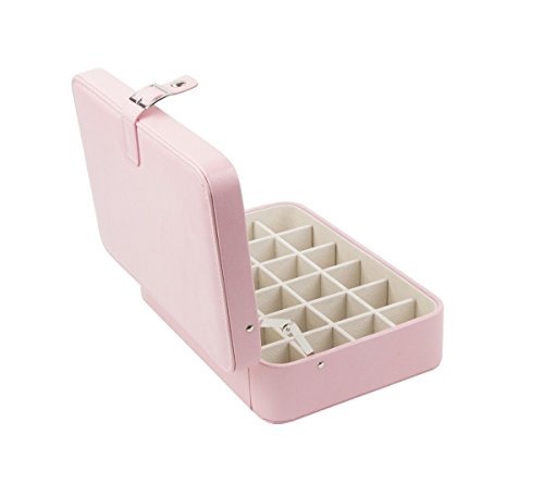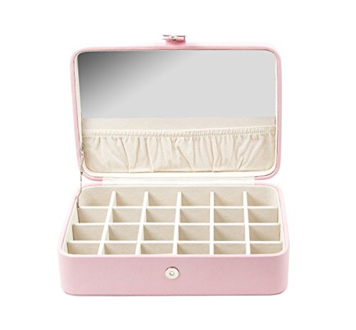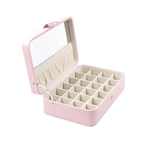 JackCubeDesign Leather Earring and Ring Jewelry Box, 24 Compartments(Pink, 9.9 x 6.9 x 3.15 inches)- :MK203C