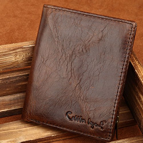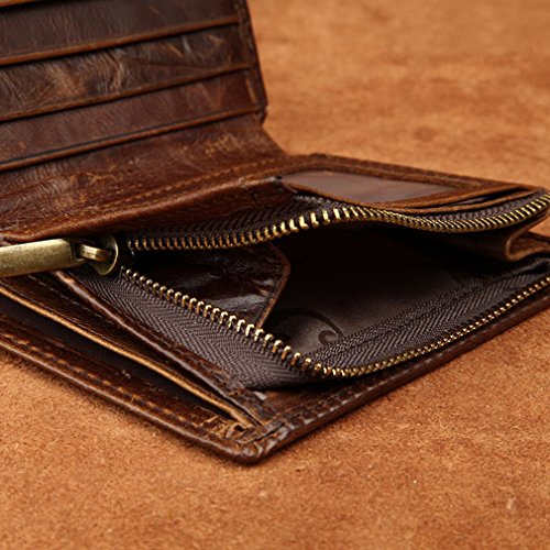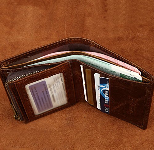 - Feature : Product NO: W1032 / Material: Genuine Leather / Size: L10.5cm×W1.5cm×H12cm (4"×0.5"×4.8") / Structure:This is a top genuine leather wallet for men come with a few card slots, ID window, cash holders as well as zipper compartment for coins. You'll fall in love with this comfortable size wallet. / This kind of leathe is easy to get scratches on the surface, please be noted before placing the order, thanks.