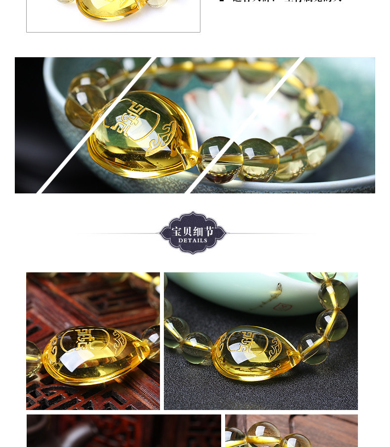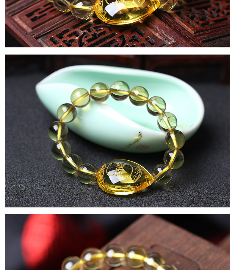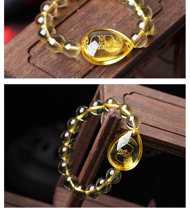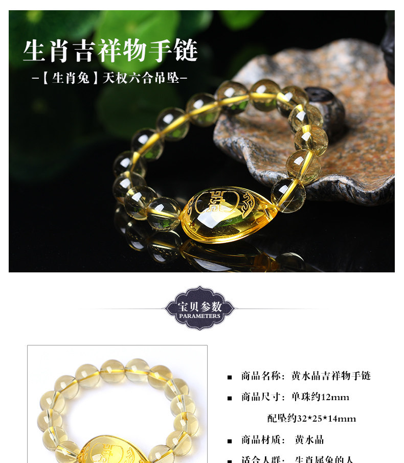 开光黄水晶[生肖兔]吊坠卯辅岁合七星堂鸡年开运吉祥物手链