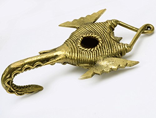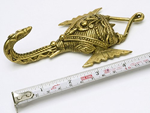 Brass Coat Hook Hanger Elephant Theme India Tribal Craft Vintage Style 5.5"HT