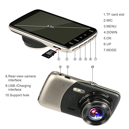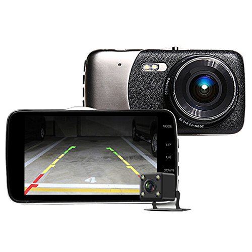 SKydot Car Dash Camera Front And Rear With Full HD 1080P+720P Night Vision DVR Dual Cam 4.0 Inch IPS Screen,170 Wide Angle, G-Sensor, Motion Detection, Parking Mode Video Recording