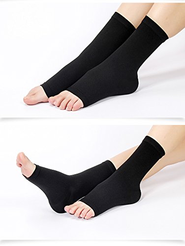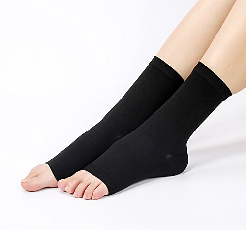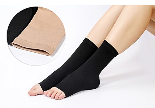 -. Feature : High quality nylon and spandex in open-toe style / Hand wash, dry the air. / Compression helps reduce swelling and excess fluid buildup. / Comfortable for all Day Wear,helps to relieve pain & discomfort related to plantar fasciitis, achiles tendon, stress fracture, edema / Package Include:1pair* Foot Sleeves,1pcs Card Sleeve