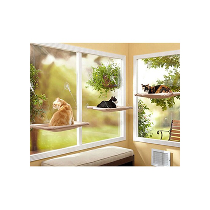 창유리에 흡반을 설치 만의묘 전용 해먹(hammock)입니다.