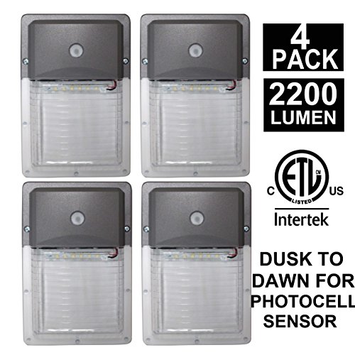 * Automated dusk-to-dawn photocell functionality. Light OFF at sunrise/daytime and light ON at sundown/night. Die-casting of aluminum housing with clear lens, Anti-corrosion, Waterproof IP65, 5000K Daylight for Outdoor illumination.