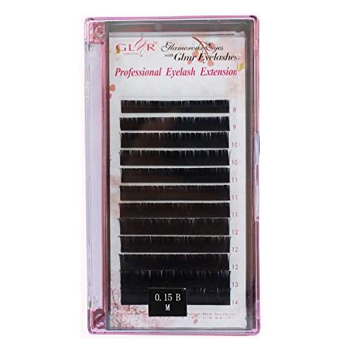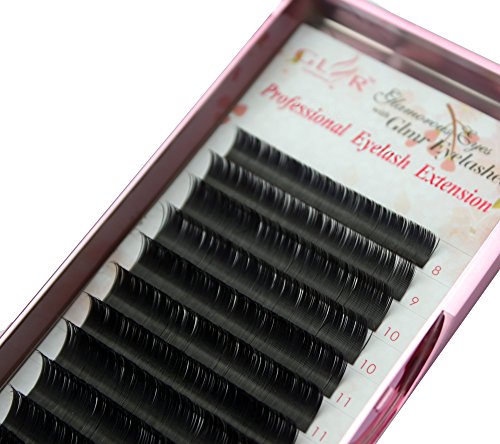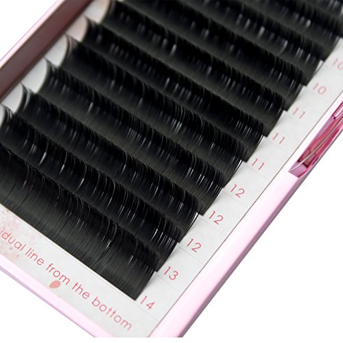 Silk Matte Black Ellipse Flat Semi Permanent Natural False Eyelashes Extension B Curl 0.15mm Thickness 8-14mm Mixed Length for Professional Salon Use (B Curl...