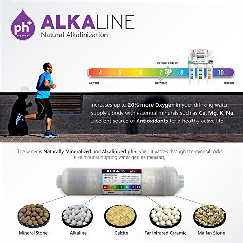 Express Water ROALK5D 10-Stage Alkaline Reverse Osmosis Home Drinking Water Filtration System with 5 Stage Alkaline Mineral pH+ Antioxidant Remineralization Filter - 50 GPD