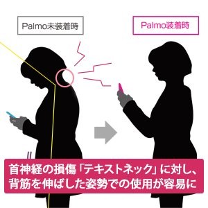 端末を重力に対し下から支える必要がないので、前かがみの姿勢ではなく、背筋を伸ばした姿勢で使用することが容易になります。そのため、長時間端末画面を眺めるときに、前かがみで首に負担がかかり、筋肉や神経を損傷してしまう「テキスト・ネック」にも有効と考えられます。