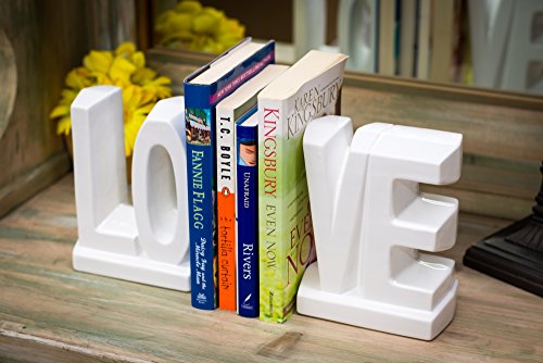 (Drew Derose)/Furniture Decor/Home Decor/DIRECT FROM USA/White Glazed Ceramic LOVE 7 Inch Bookend Set