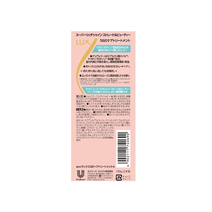 원본상품명: ラックス ス?パ?リッチシャイン ストレ?ト & ビュ?ティ? うねりケア トリ?トメント 180g