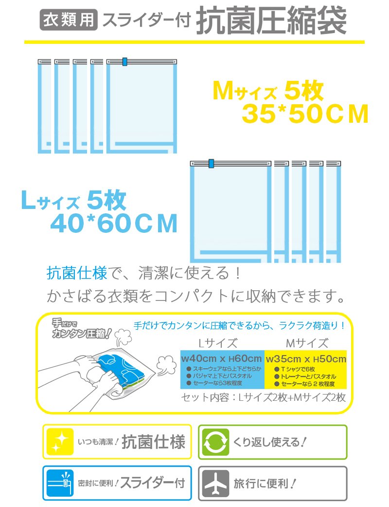 Compress bulky clothes in a bag and effectively use the luggage space.