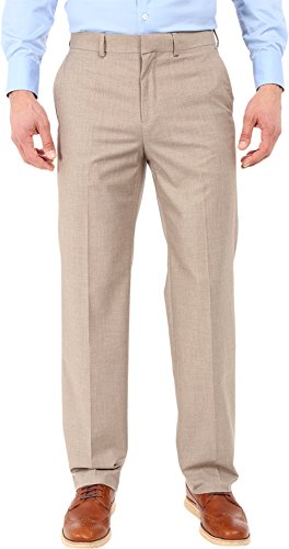 The Dockers® Flat Front Straight Fit Dress Pants are classically stylish for a clean-cut look. Straight Fit is cut straight through the seat and thigh for a timeless look that's not too slim and not too loose. Sits slightly below the waist. Belt loop waistband. Button and hook closure with zip fly. Four-pocket design. 80% polyester, 20% rayon. Machine wash warm, tumble dry low. Imported. Measurements: Waist Measurement: 32 in Outseam: 42 in Inseam: 32 in Front Rise: 10 in Back Rise: 15 in Leg Opening: 16 in Product measurements were taken using size 32, inseam 32. Please note that measurements may vary by size.Feature