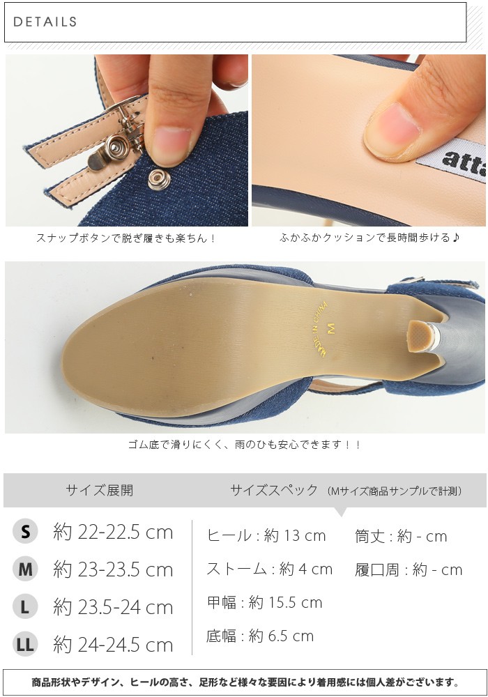 | カラー | 01. ブラック 02. アイボリー 03. デニム |