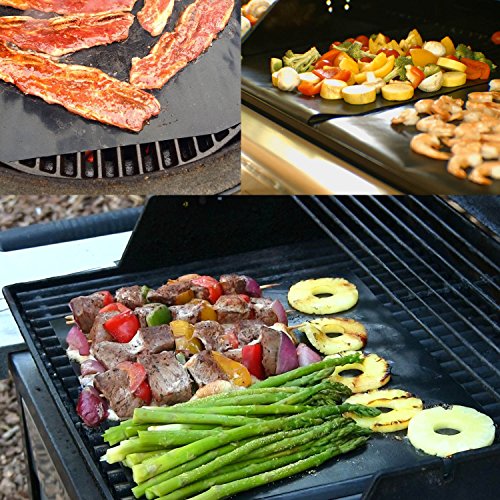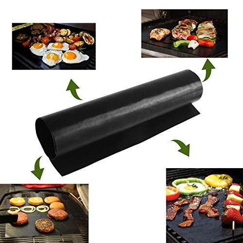Heat Resistant Baking Grill Mat - Our grill mats are more thin for faster heating, able to withstand heat up to 500°F, and totally BPA and PFOA free. A healthy choice for low fat dishes cooked at outside.