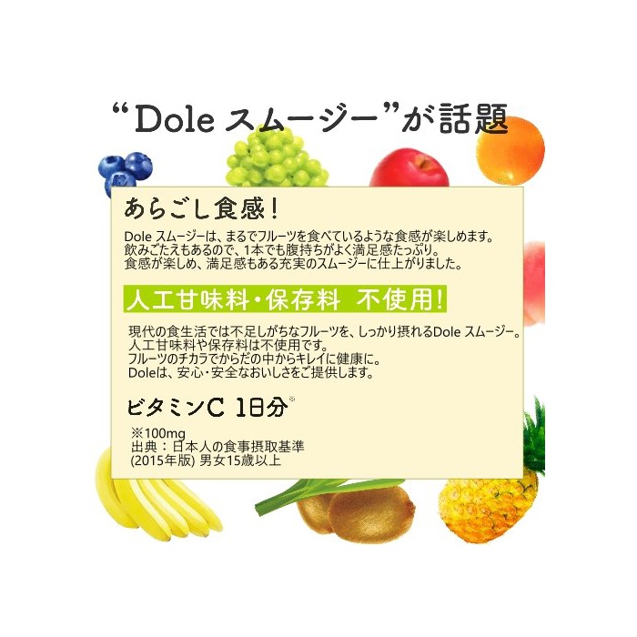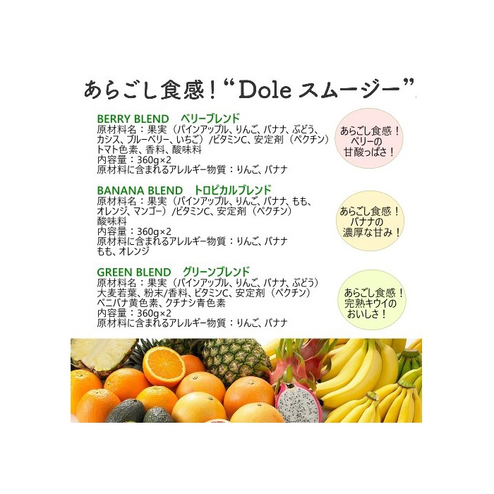 원본상품명: DOLE ドル スムジ BERRY ベリ TROPICAL トロピカル GREEN グリン 360ml×6本 フルツ 果汁