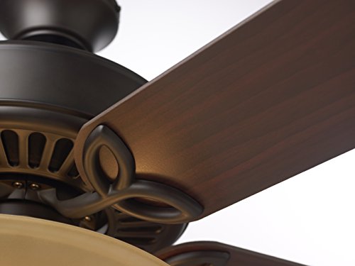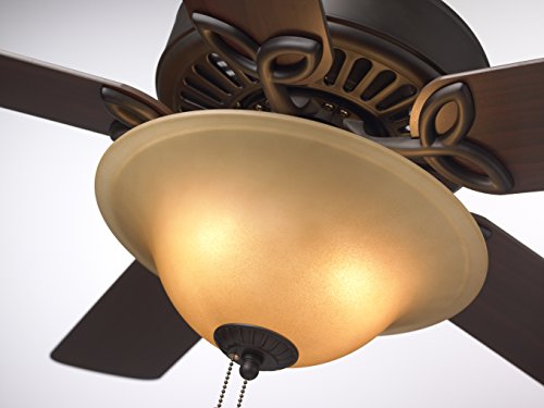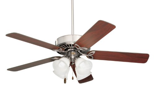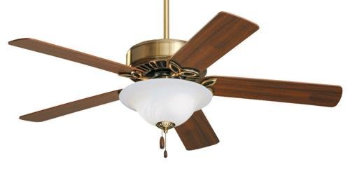 The 50" Pro Series Ceiling Fan in Antique Brass features five reversible Medium Oak/Walnut blades and an integrated Opal Matte glass light fixture. If so desired, the detachable light fixture may be removed and replaced with the included switch cover. "Quick Install" features, such as an easy-install mounting bracket, snap-on glass, and Precision-Lock blade arms, are incorporated to make installing your new ceiling fan a breeze. The 50” Pro Series comes with a dual mounting option for close-to-the-ceiling or downrod installation.Feature