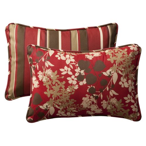 Decorative red/brown floral/striped toss pillow rectangle reversible, 2-pack