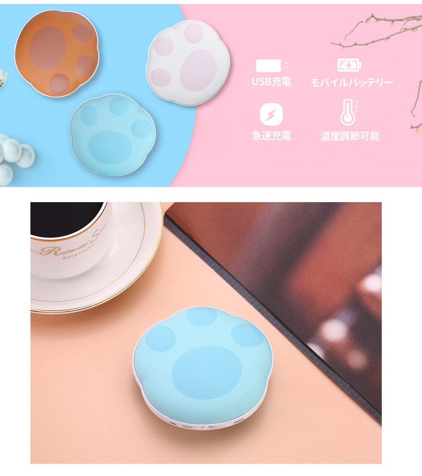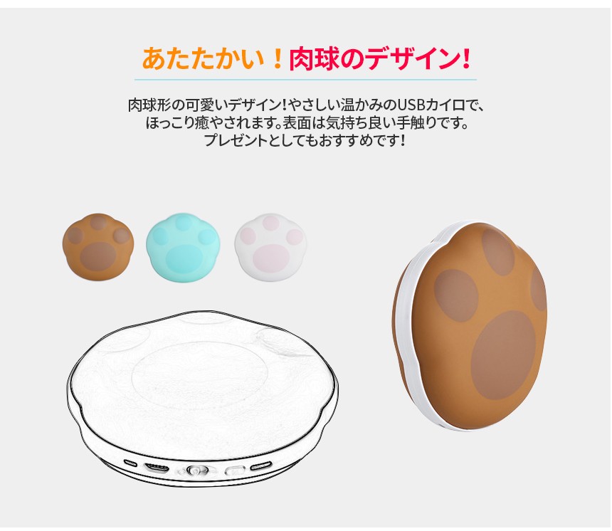 | 商品名 | 肉球ハンドウォーマー USB カイロ 5000mAh 充電式カイロ 充電式ハンドウォーマー 両面暖かい モバイルバッテリー |