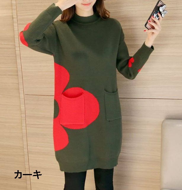 〓〓〓〓〓〓〓〓フラワー柄ナチュラルニットワンピース襟元はスッキリ丸襟スタイル重ね着もおしゃれにできる秋冬ワンピース柔らか生地感で着心地も抜群ボトムと合わせて大人のカジュアルスタイルに☆〓〓〓〓〓〓〓〓◆素材◆アクリル◆サイズ◆/М~Lサイズ/フリーサイズ/バスト98cm/肩幅48cm/袖丈41cm/着丈81cm◆カラー◆カーキ:グレー:ネイビー〓〓〓〓〓〓〓〓商品のご案内海外輸入商品の為リーズナブル価格でご提供をさせて頂いております。下記の事項をご確認ご了承の上ご注文をお願い致します。♯予約商品になります。生産輸入の関係で発送日が前後する場合がございます。♯再生産の関係で画像とデザイン、多少の色具合が異なる場合がございます。♯メジャーでの測定の為若干の誤差はご了承下さい。♯生地不良等の関係で生産中止になる場合がございます。♯海外代理店より輸入の為、商品タグ、洗濯表示がない場合がございます。