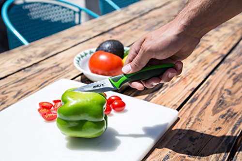 Knife and the peeler have stainless steel blades, requiring no maintenance.