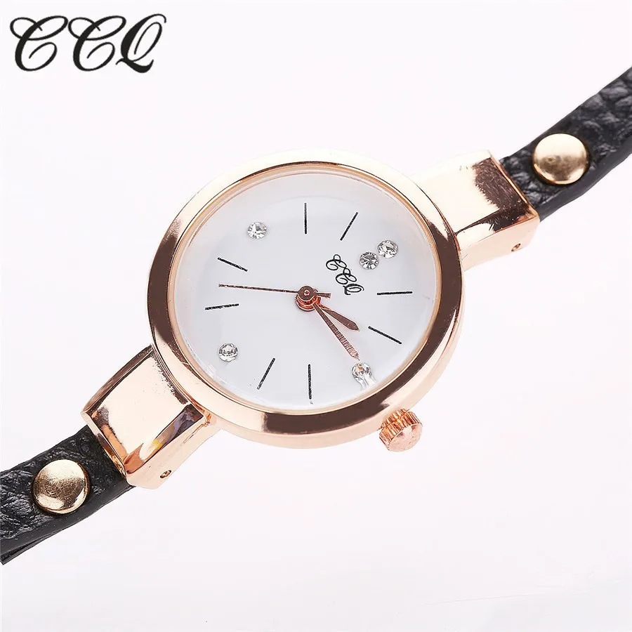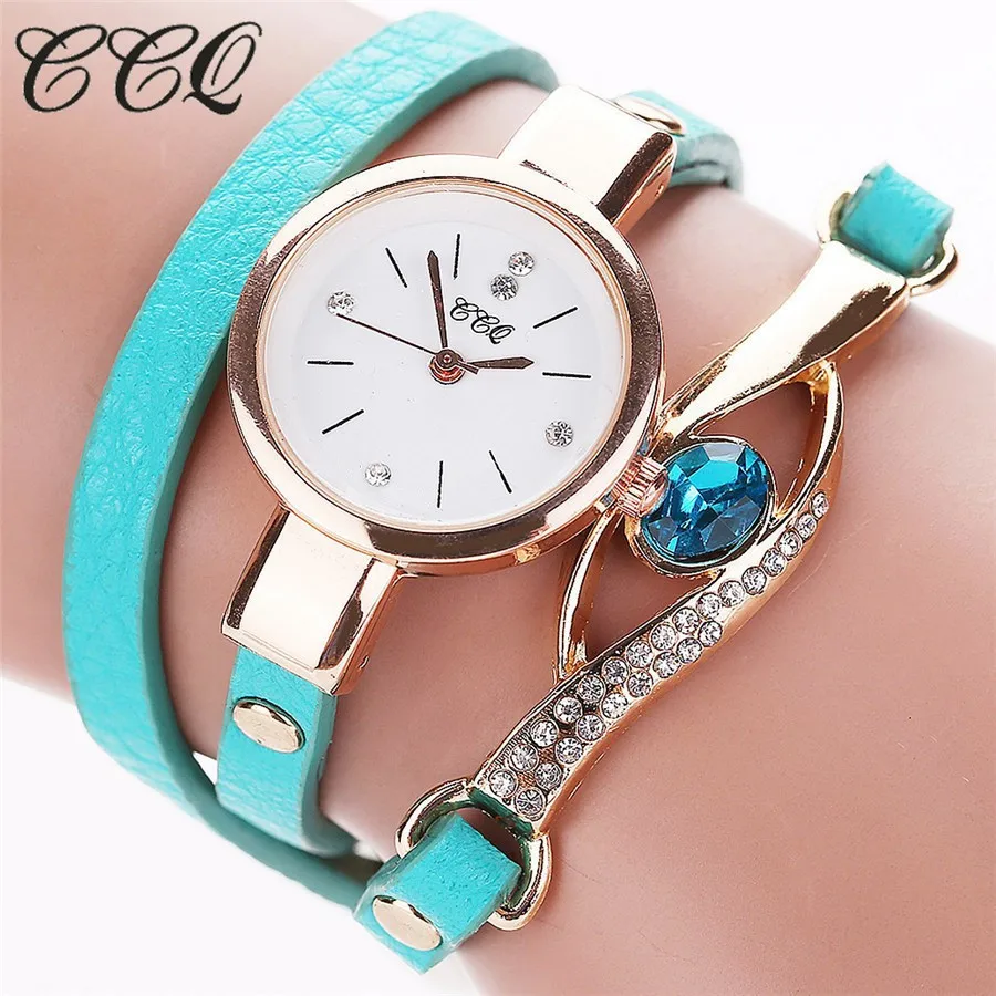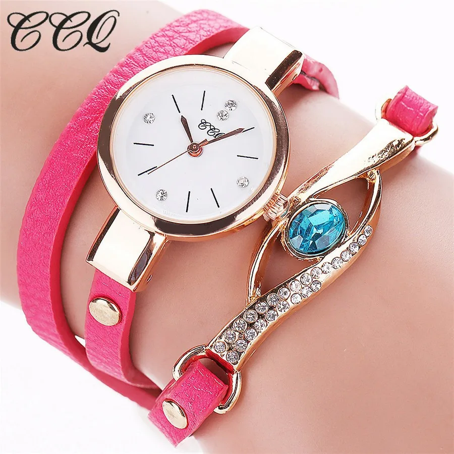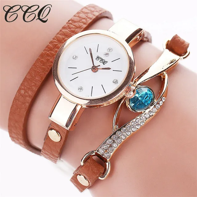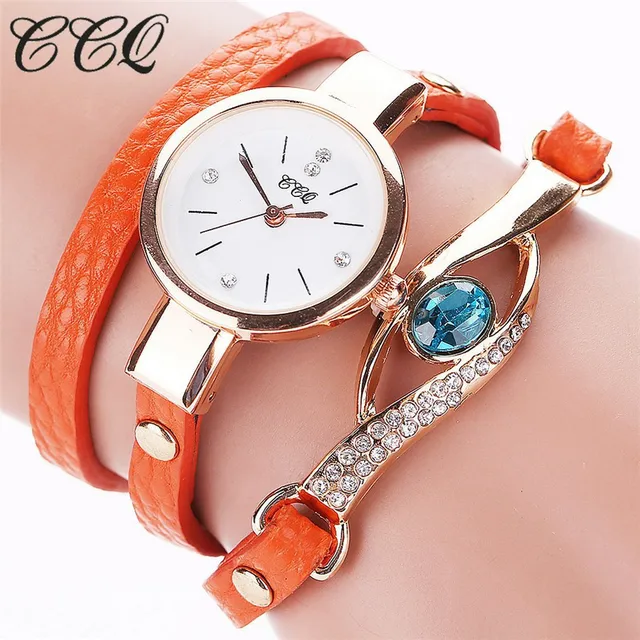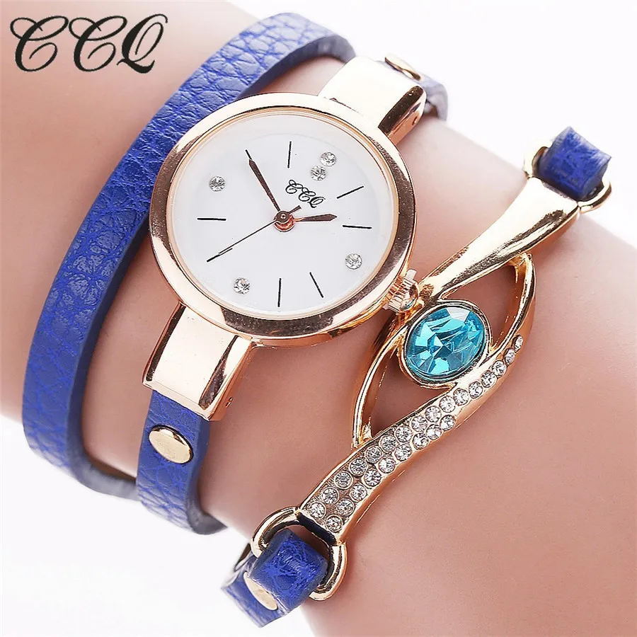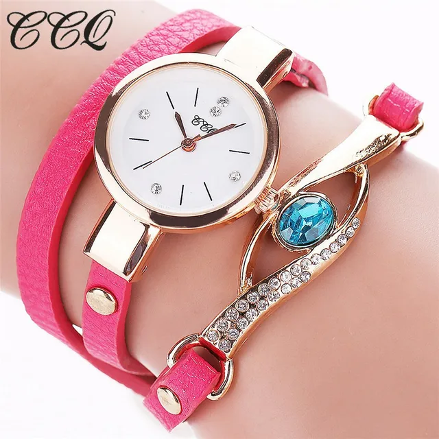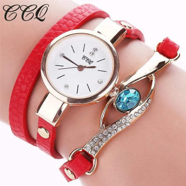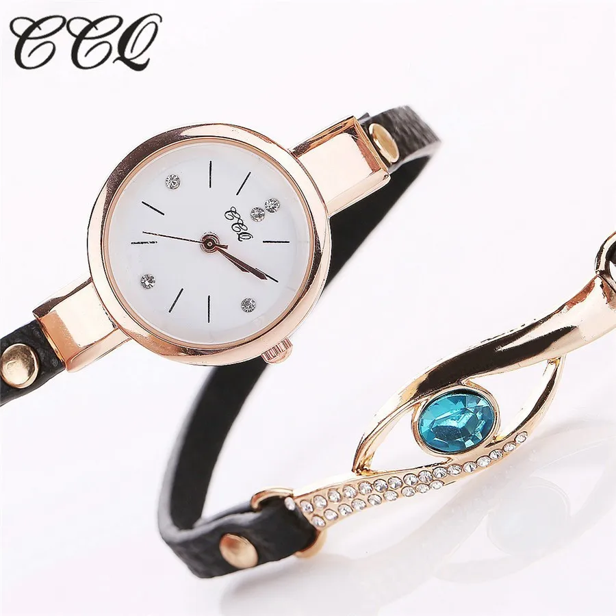 | [해외] CCQ 브랜드 여성 럭셔리 골드 눈 보석 드레스 캐주얼 시계 여성 골드 팔찌 시계 여성 가죽 석영 손목 시계 선물 |