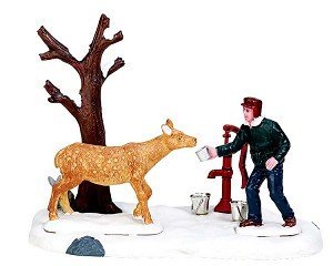 Product Description This item features a winter scene with a man holding out a cup to feed a doe. A tree and old water pump are nearby. This will be a great addition to your holiday scene. 0