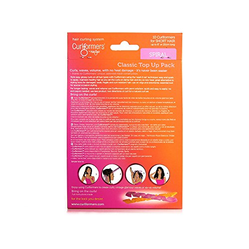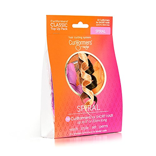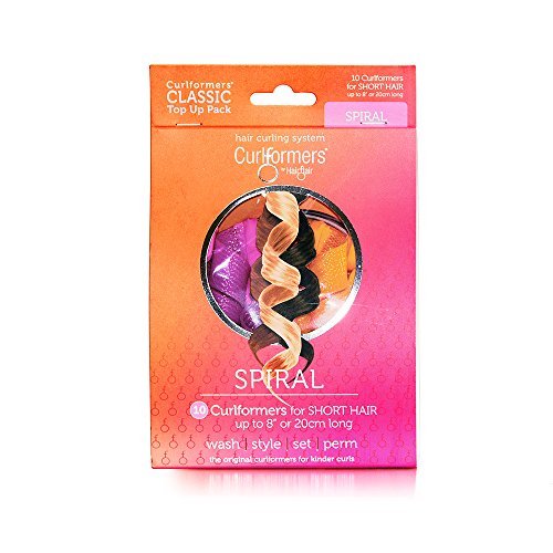 - HIGH QUALITY HAIR CURLERS. The Spiral curls top up pack contains 10 short spiral Curlformers hair curlers: 5 pink for clockwise curls and 5 orange for anti-clockwise curls, creating uniform or random, smooth spiral curls for short hair up to 8" (20cm)