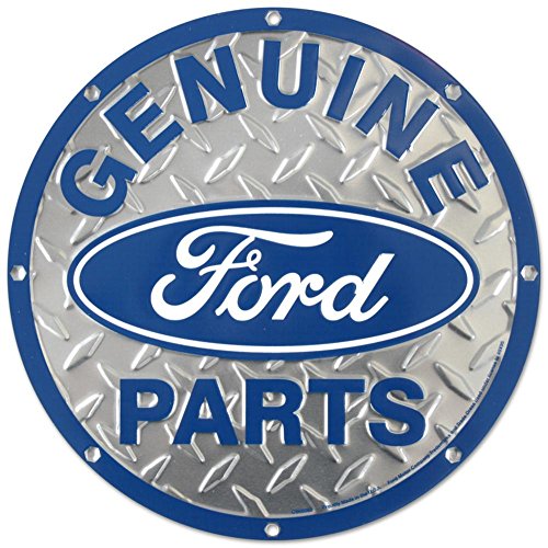 Ford Genuine Parts Diamond Plate Die-Cut Round Tin Sign