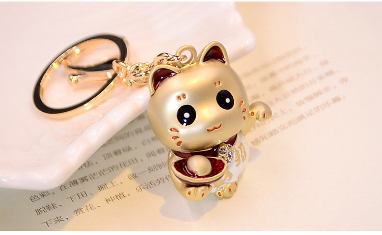 吉祥招财猫汽车钥匙扣创意可爱钥匙链镶钻钥匙挂件 包配饰品礼物